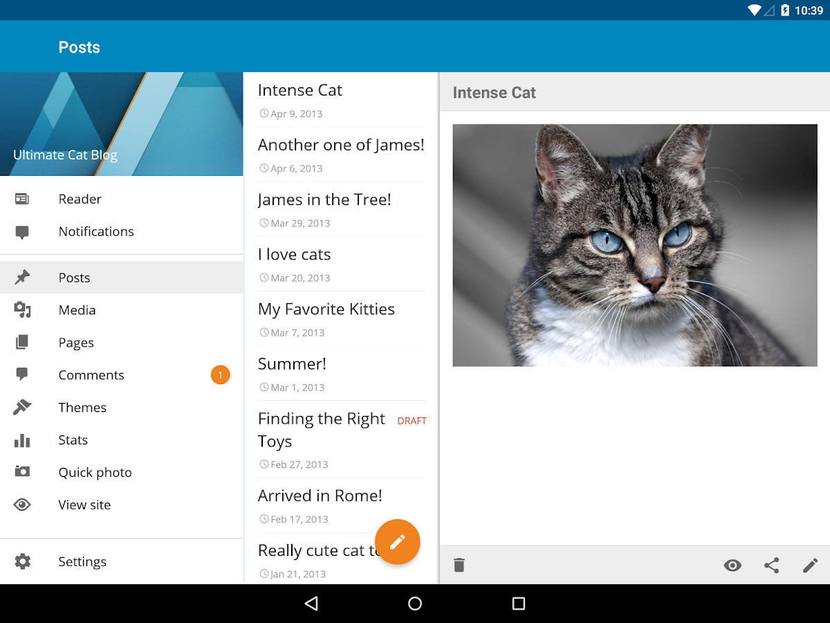 WordPress for Android puts the power of publishing in your hands, making it easy to create and consume content. Write, edit, and publish posts to your site, check stats, and get inspired with great posts in the Reader. What’s more? It’s open source.